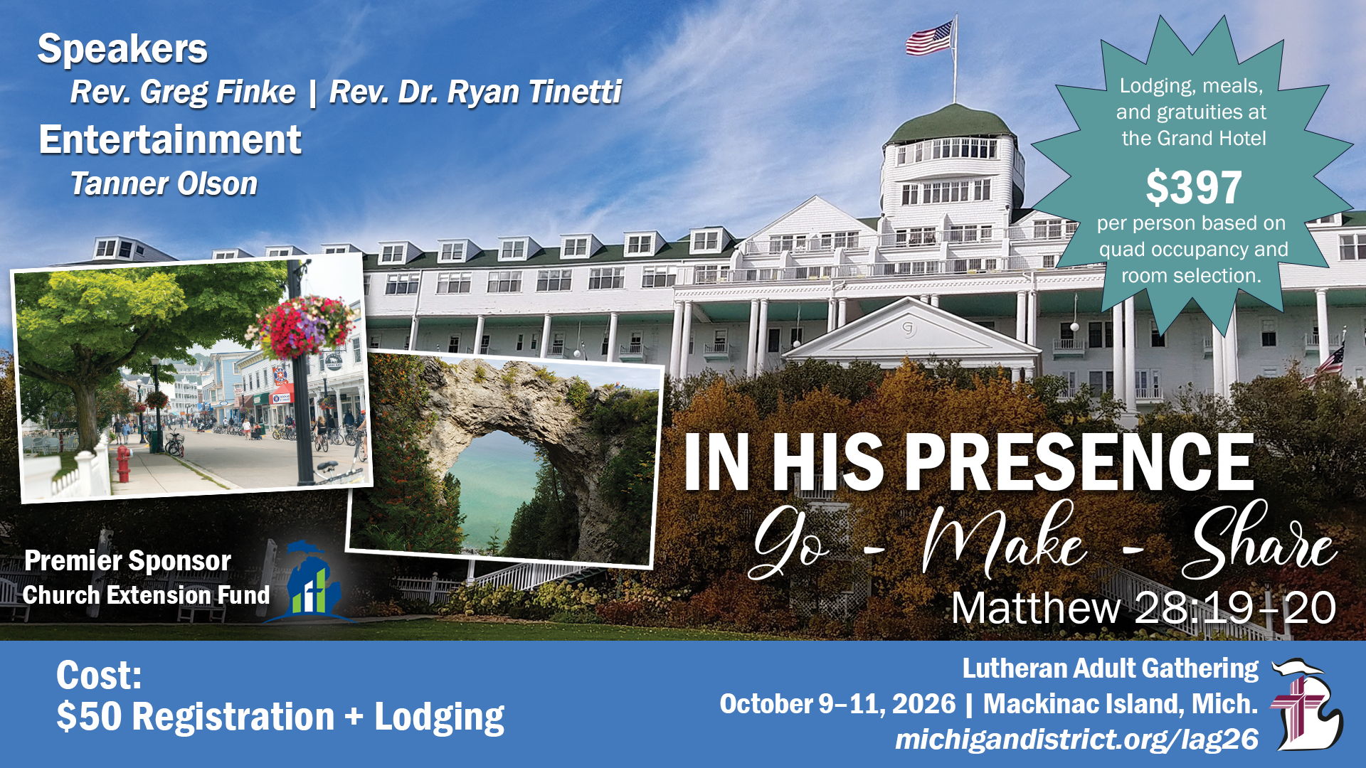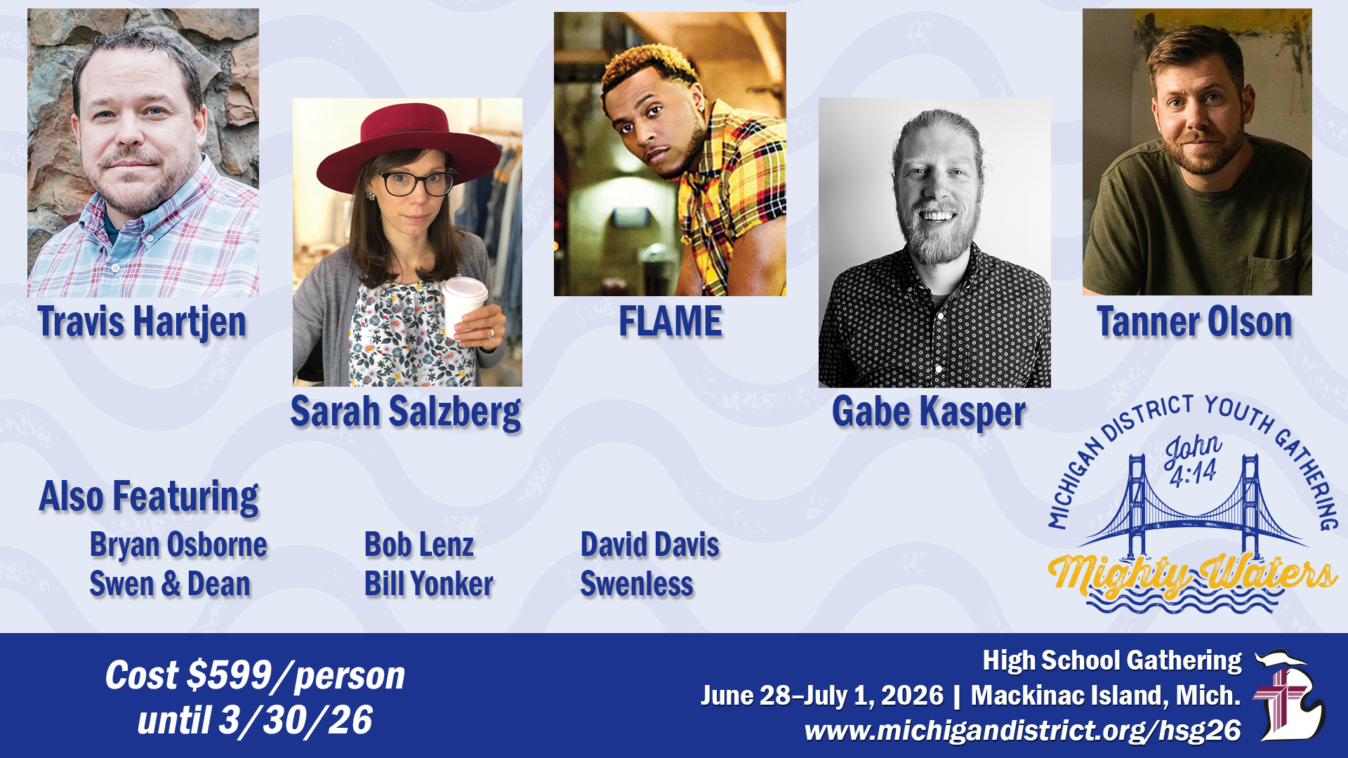 From June 28-July 1, 8th graders-high school seniors, join us for an amazing time with 800+ other youth on Mackinac! Our time together includes: speakers, musicians, servant event, bike and boat rides, and so much more! $100 deposit saves your spot with our group. Due by February 20! Contact Angela at aschepmann@splcs.net to register.