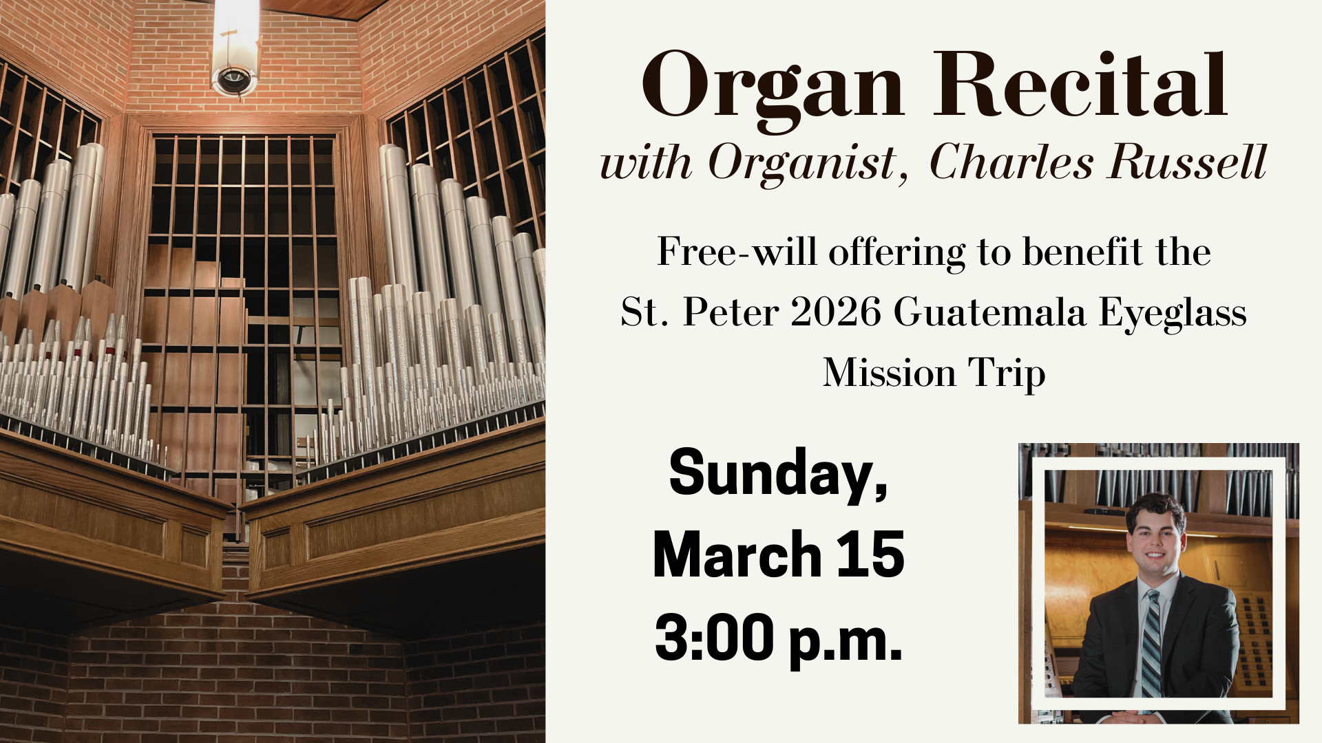 Sunday, March 15, we will host an Organ Recital performed by our Traditional Worship Director, Charles Russell, to raise funds for our 2026 Mission Trip. This event is free-will donation and begins at 3:00 p.m. in the Sanctuary.