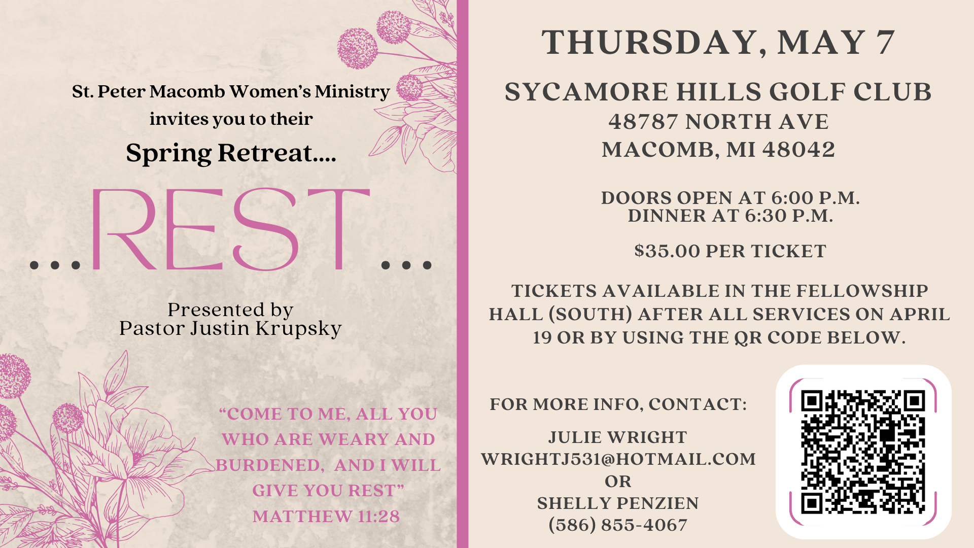 St. Peter Macomb Women’s Ministry invites you to their Spring Retreat. For tickets, please use the link below.