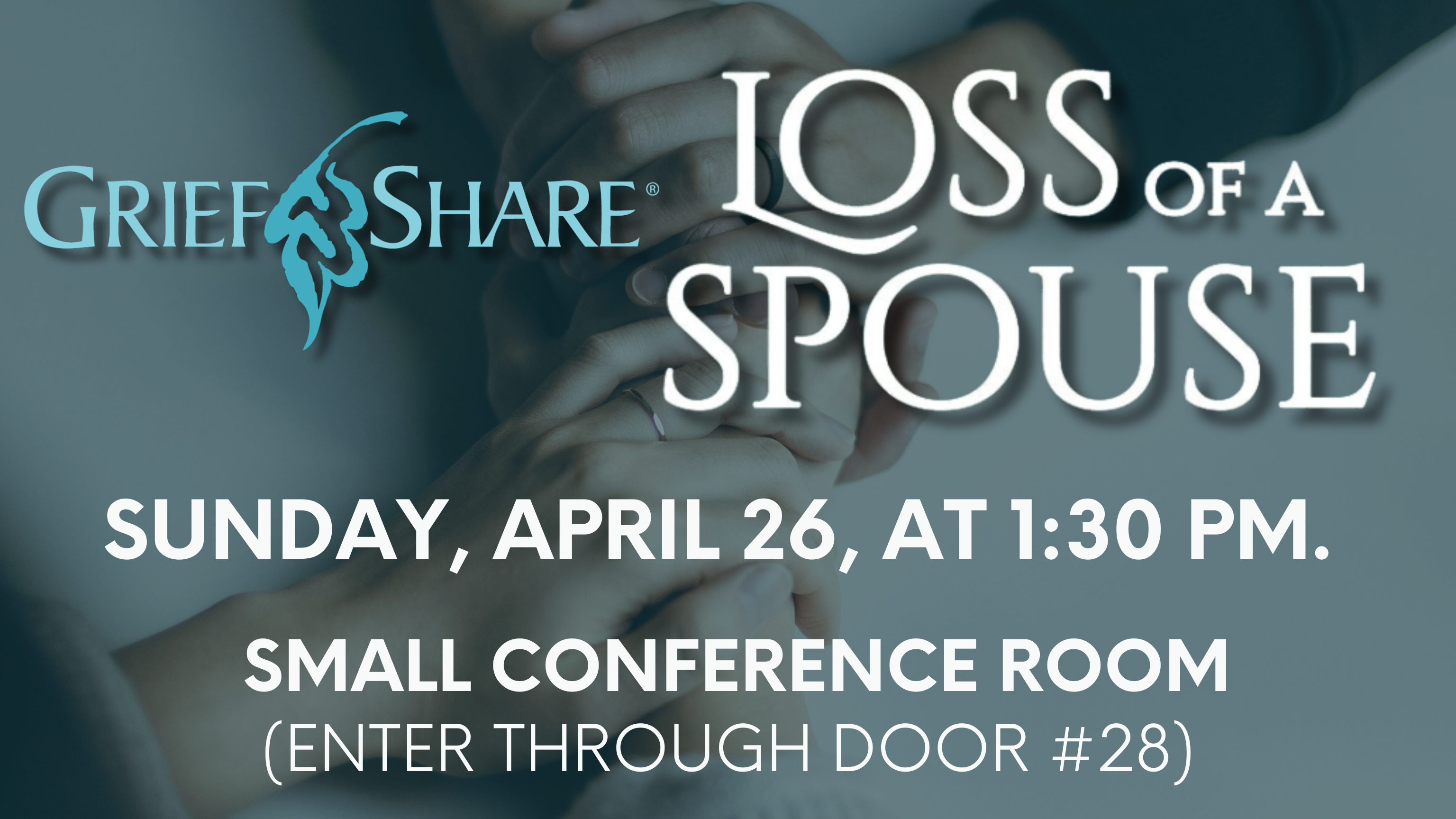 Our GriefShare facilitators are hosting Loss of a Spouse on April 26. This one-time session will begin at 1:30 p.m. in the Small Conference Room. Please enter through Door #28.