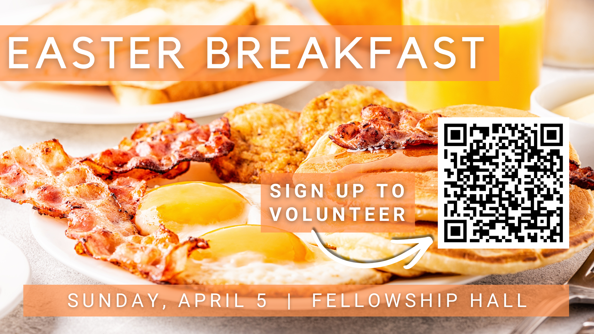 Join us for Easter Breakfast between services on April 5! If you’re able to help, please use the link below to sign up to volunteer. Thank you! Questions? Contact Liz at lizboik@yahoo.com.