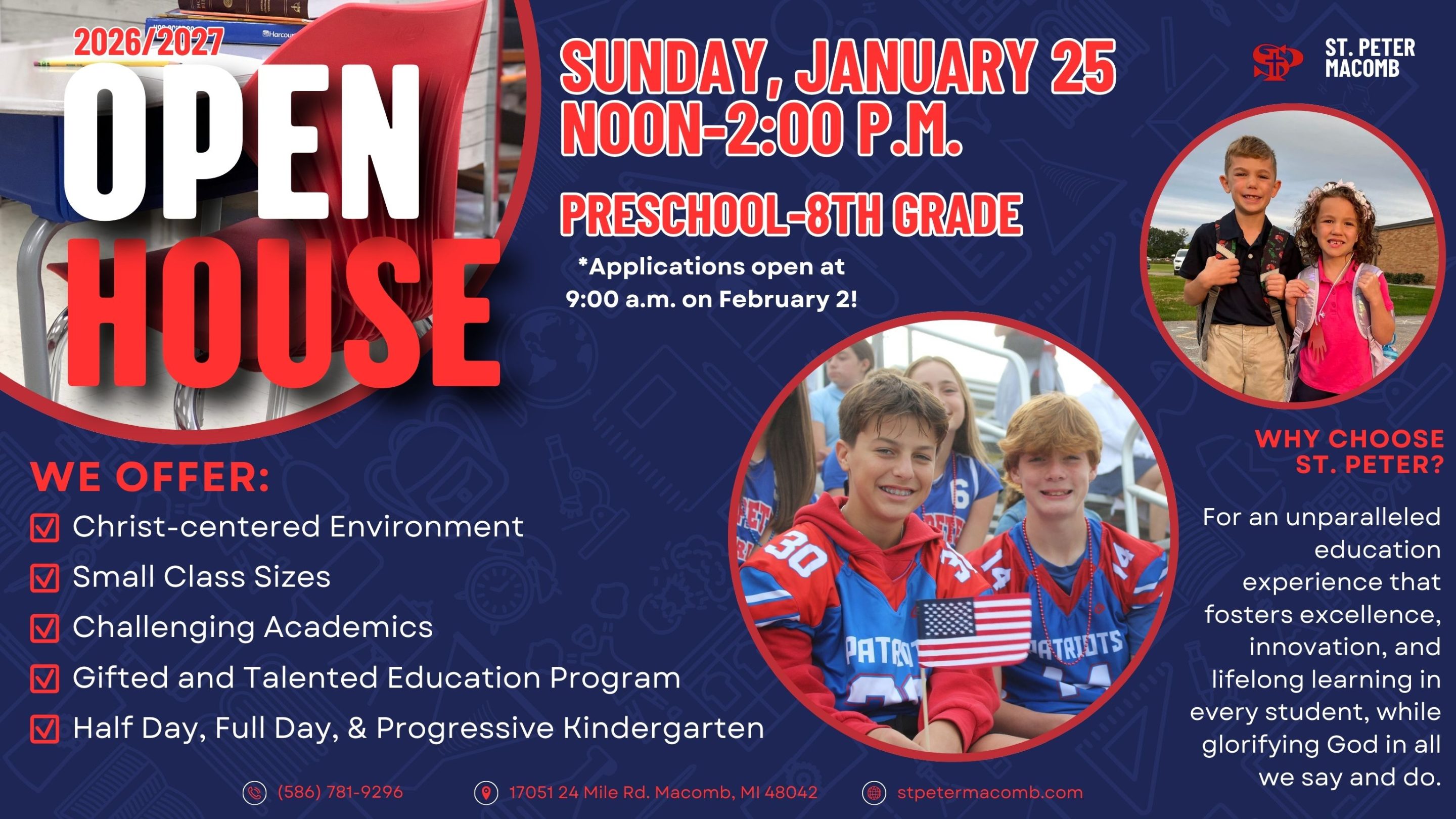 St. Peter Preschool – 8th Grade Open House 2026-2027