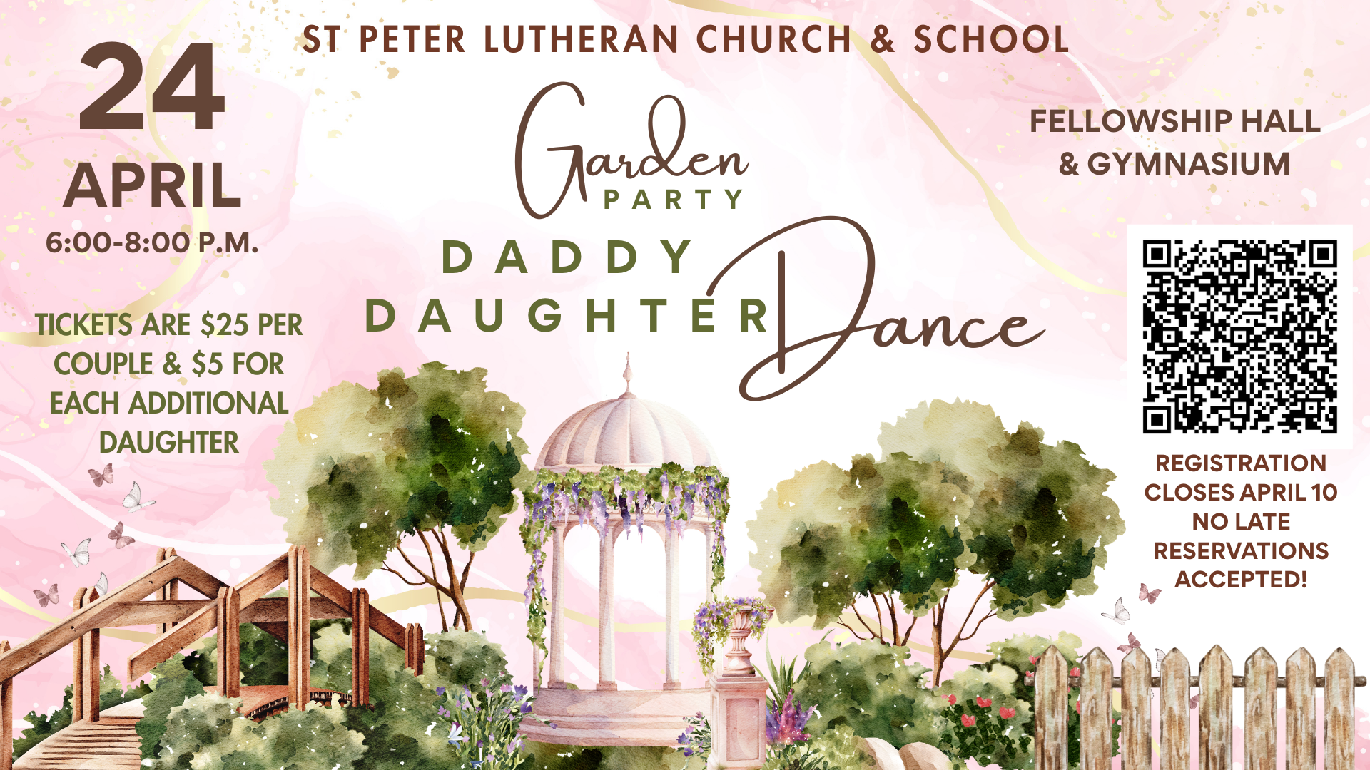 Tickets are $25 per couple and $5 for each additional daughter. Due to the size of this event, it is only open to St. Peter church and school families. For questions contact Leanne Stallmann lstallmann@splcs.net.